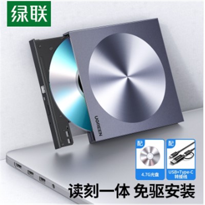 綠聯(lián)/UGREEN 80130 光驅(qū) 外置移動光驅(qū)盤 Type-C/USB接口刻錄機(jī)臺式筆記本電腦通用DVD8 鋁合金款【免裝驅(qū)動】