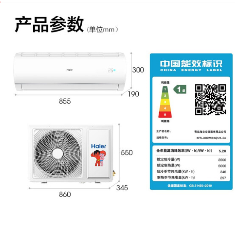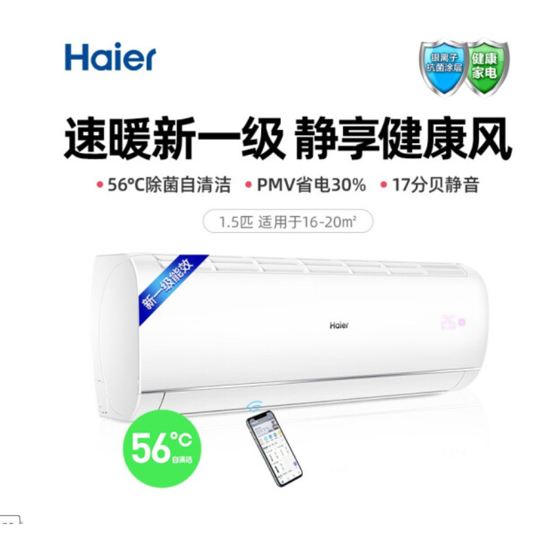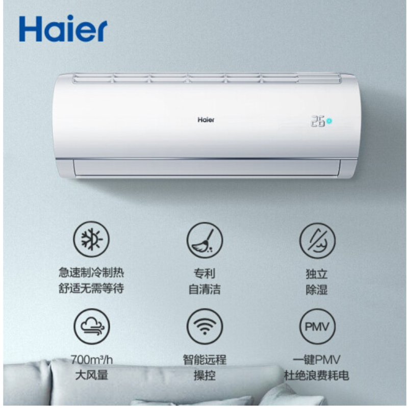 海爾(Haier)1.5匹 新一級能效省電 智能 自清潔 變頻冷暖壁掛式空調(diào)掛機 速享風 KFR-35GW/03KBA81AU1