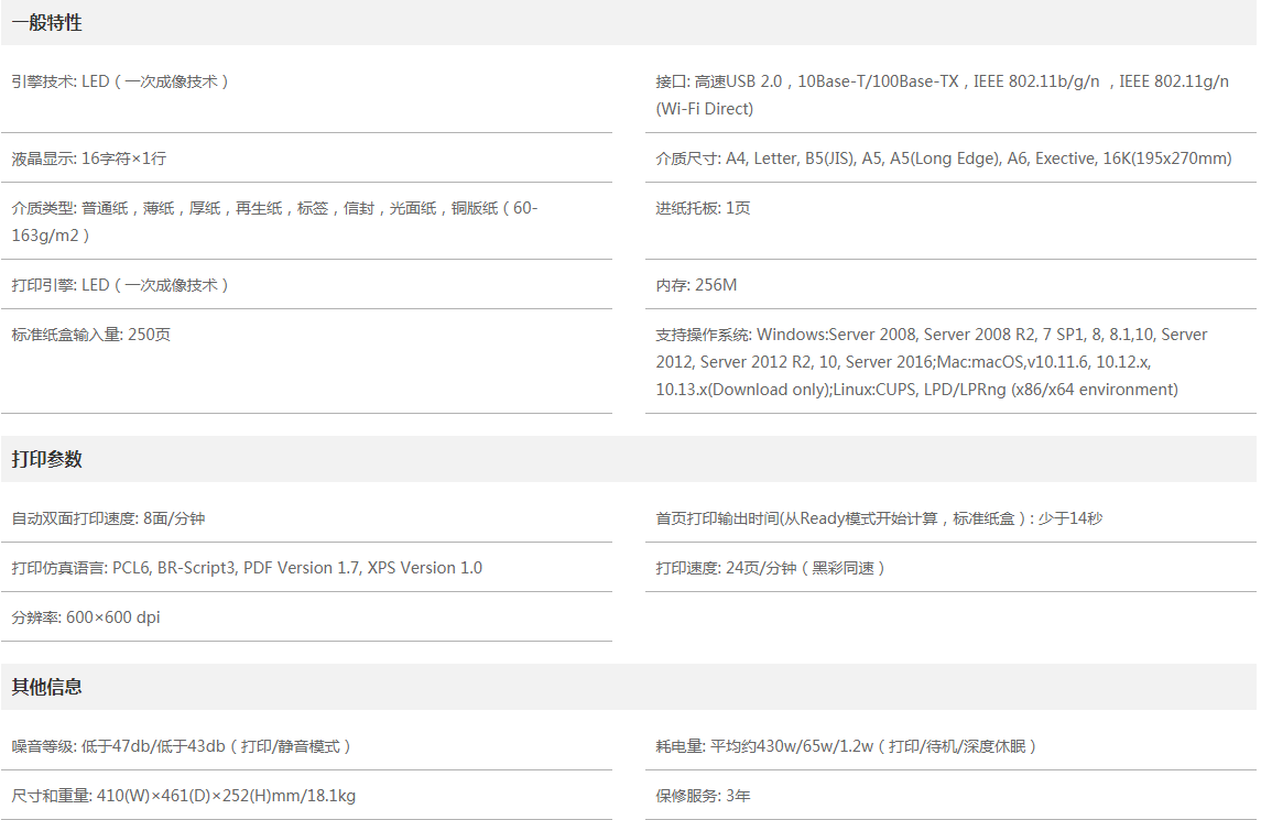 ● PCL6, BR-Script3, PDF Version 1.7, XPS Version 1.0高級(jí)打印語(yǔ)言