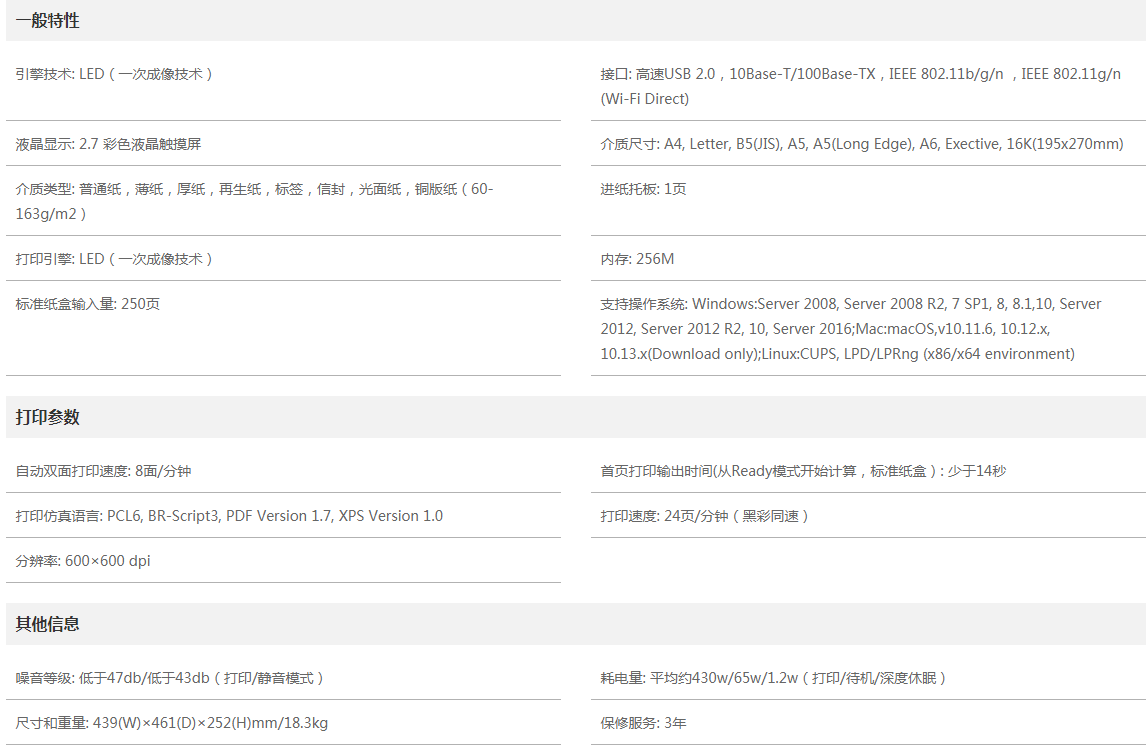● PCL6, BR-Script3, PDF Version 1.7, XPS Version 1.0高級(jí)打印語(yǔ)言