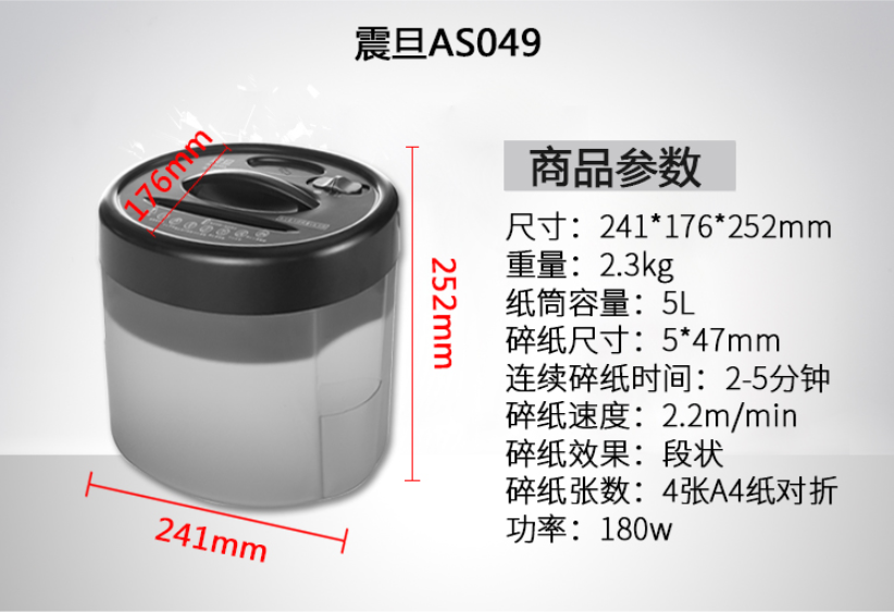 震旦AS048/AS049 桌面型辦公碎紙機(jī)單次4張低音便攜小型家用 桌面 淺灰色AS048