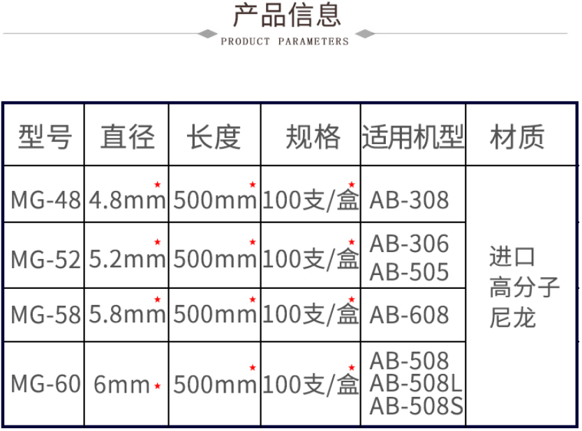 MG-48(AB-308適用) MG-58(AB-608適用) MG-52(AB-506/505適用) MG-60(AB-508/508S/508L適用)