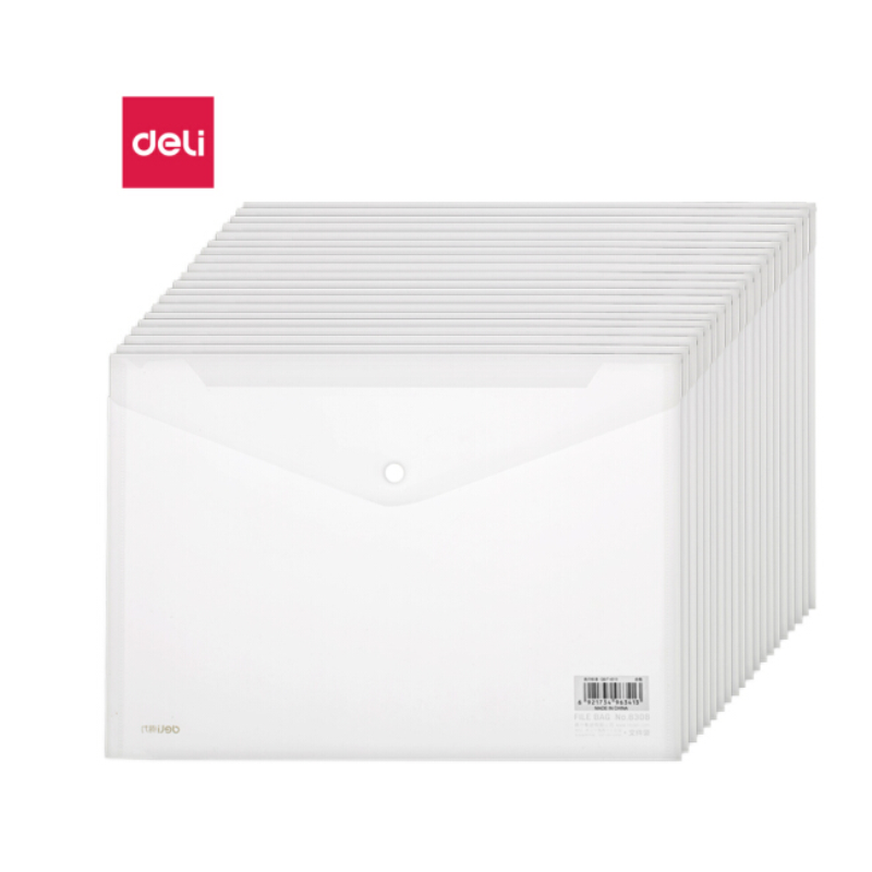 得力(deli)10只A4透明文件袋 按扣資料袋 塑料檔案袋
