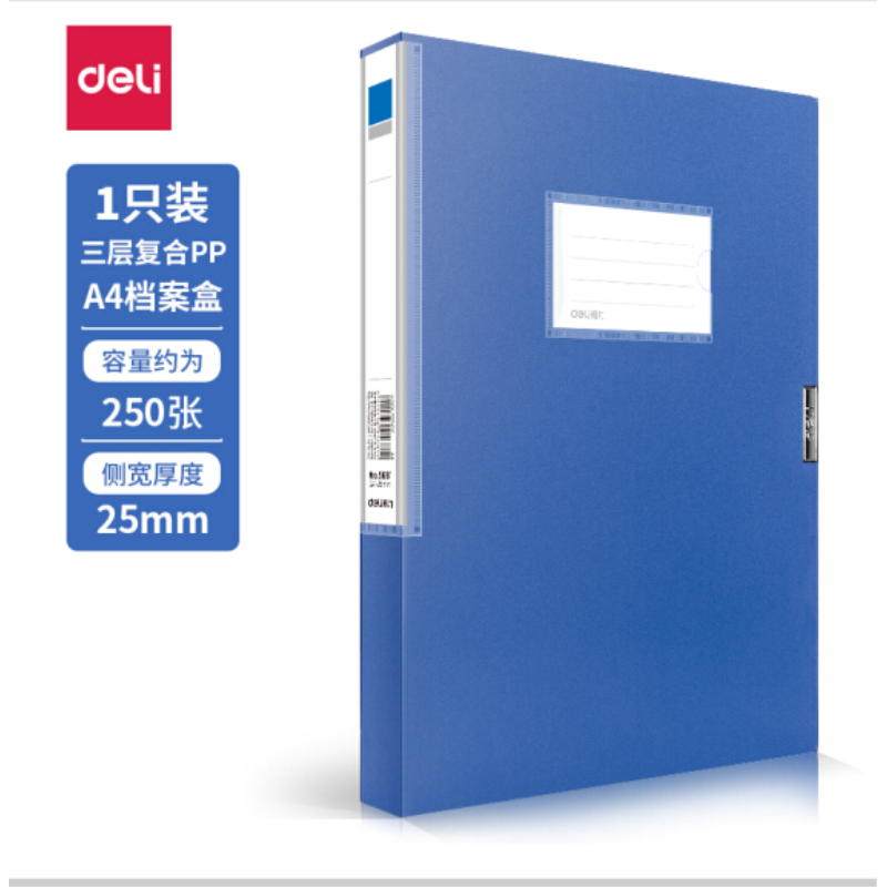 得力(deli)1只25mmA4塑料檔案盒 加厚資料文件盒 財(cái)務(wù)憑證收納盒