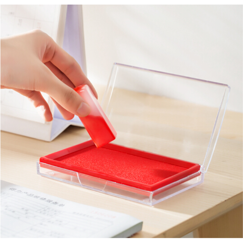 得力(deli)137*88mm透明外殼方形快干印臺印泥 辦公用品 紅色9864
