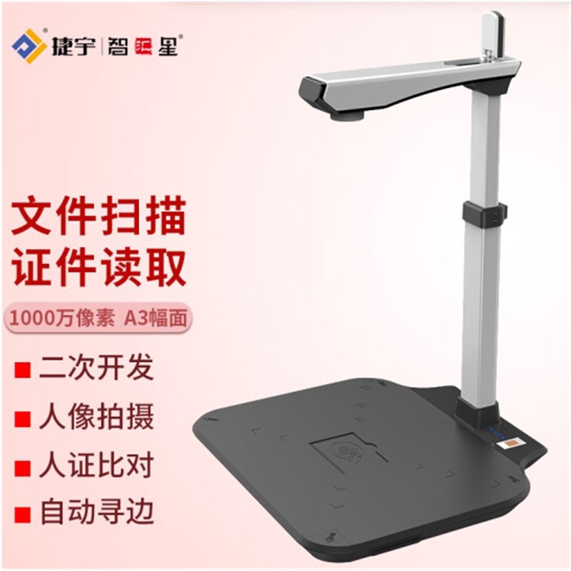捷宇 掃描儀 D10A3T-100U a3高速掃描儀可集成二代證讀卡器1000萬像素辦公文件高拍儀高清 帶副攝像頭+身份證閱讀器