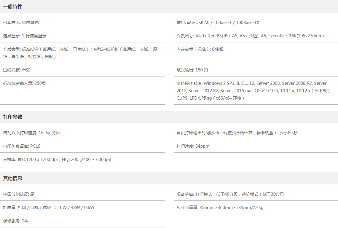 ● 高達34ppm的連續(xù)打印速度,能滿足您大印量的辦公需求。