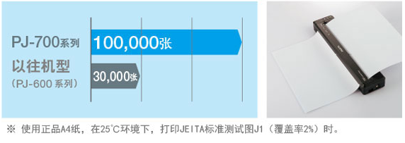 機器壽命達到A4尺寸約100000張※,達到以往機型的3倍以上。可長期放心使用。