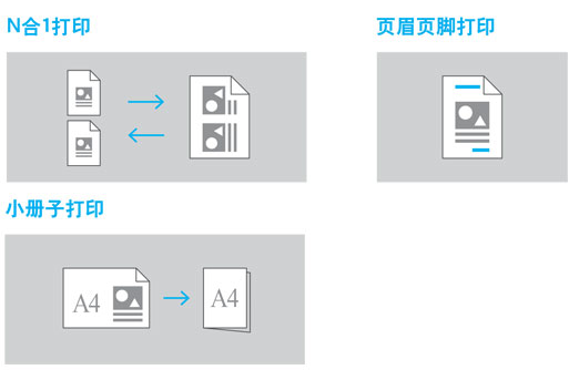 采用小冊子打印、N合一打印、海報打印、水印打印、頁眉頁腳打印方式,方便您制作個性文檔。