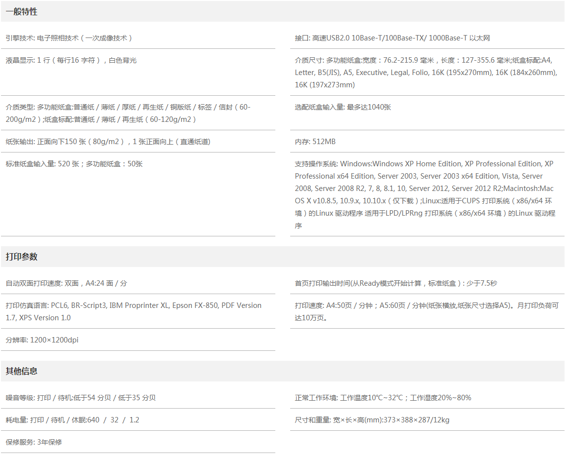 可選配520頁超大容量紙盒,最大紙張容量:1040頁,充分滿足打印任務(wù)量大的客戶需求。