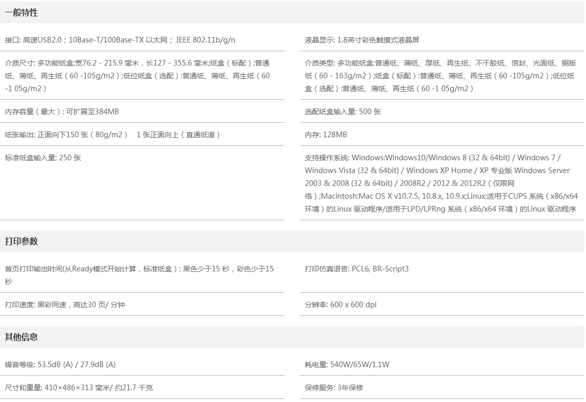 可插入USB接口直接打印,支持PDF、TIFF、PRN、JPEG、XPS文件。